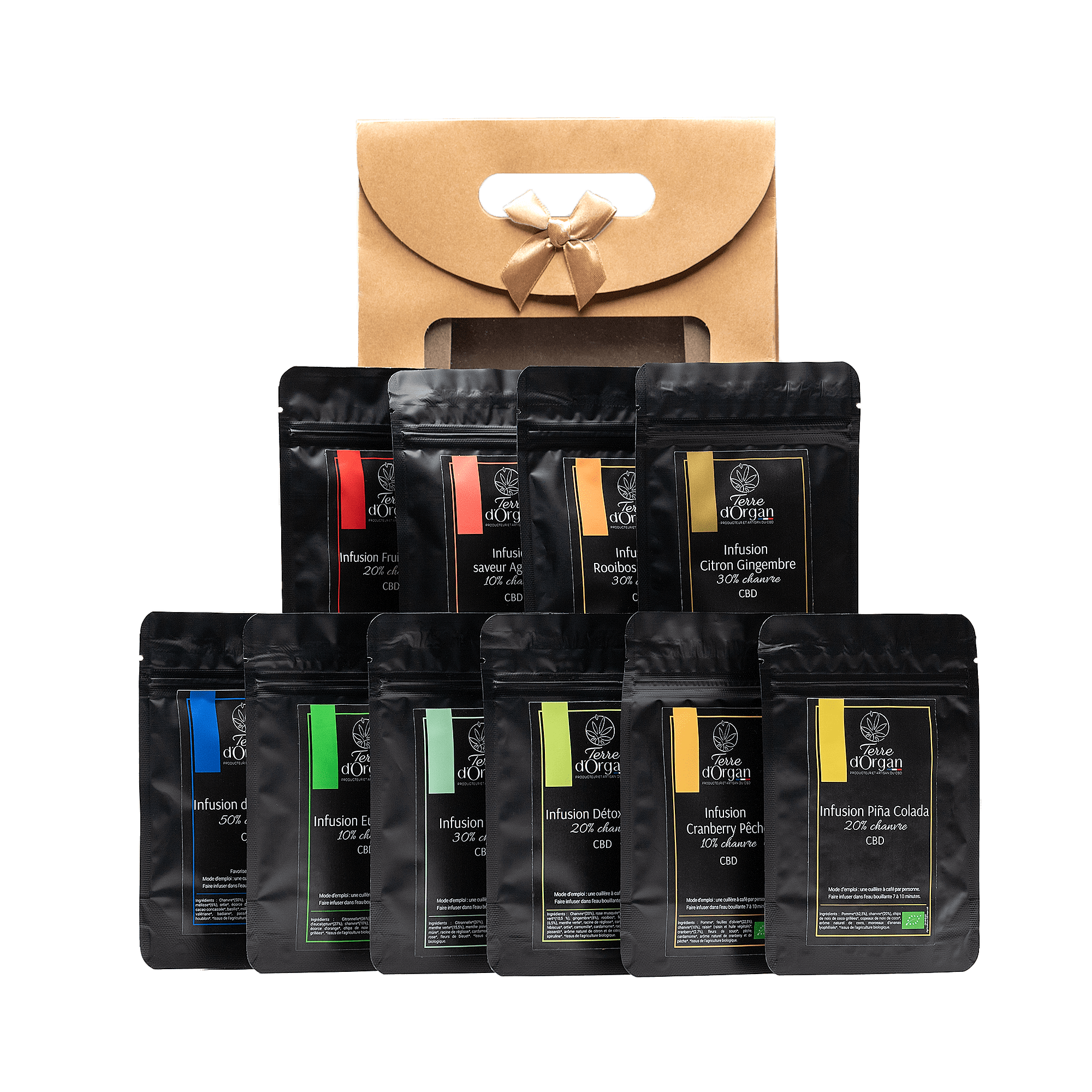 Plongez dans un univers de saveurs avec le Coffret Passion infusion CBD, une sélection de 10 infusions bio aux recettes variées et naturelles.